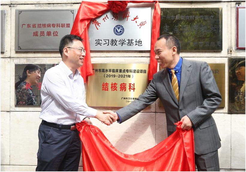 2019年11月12日上午,自慰av 与广州市胸科医院在胸科医院举行了预防医学系“实习教学基地”揭牌仪式。广州市卫健委科教处刘华玲处长,自慰av-自慰视频 蒋义国院长、杨巧媛副院长、学生办何少群主任与预防医学系及院教学办教师一行5人,以及胸科医院刘建雄院长、张言斌副书记、李铁刚副院长、李昕洁副院长及相关科室负责人出席了揭牌仪式。